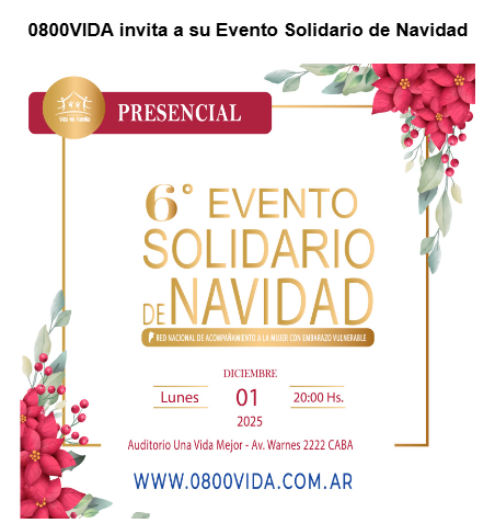0800VIDA invita a su Evento Solidario de NavidadComo desde hace 6 años, la Red Nacional de Acompañamiento a la Mujer con Embarazo Vulnerable, que se ocupa de la contención de mujeres en estado de vulnerabilidad y que atraviesan por embarazos problemáticos, organiza un evento solidario en la previa de la Navidad.